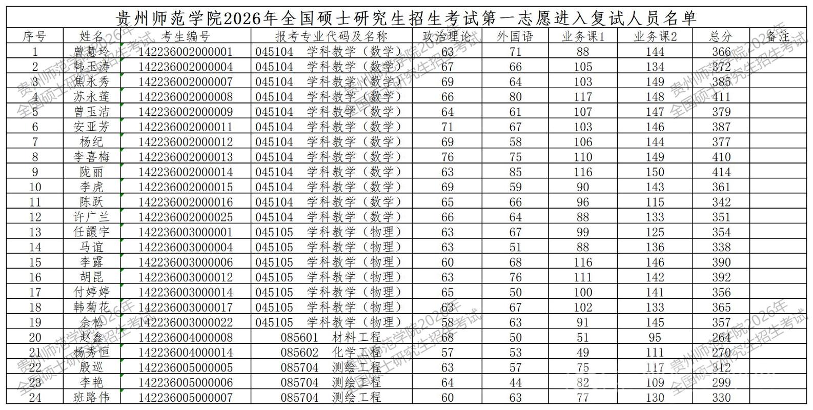 黑人av 2026年全国硕士研究生招生考试第一志愿进入复试人员名单
