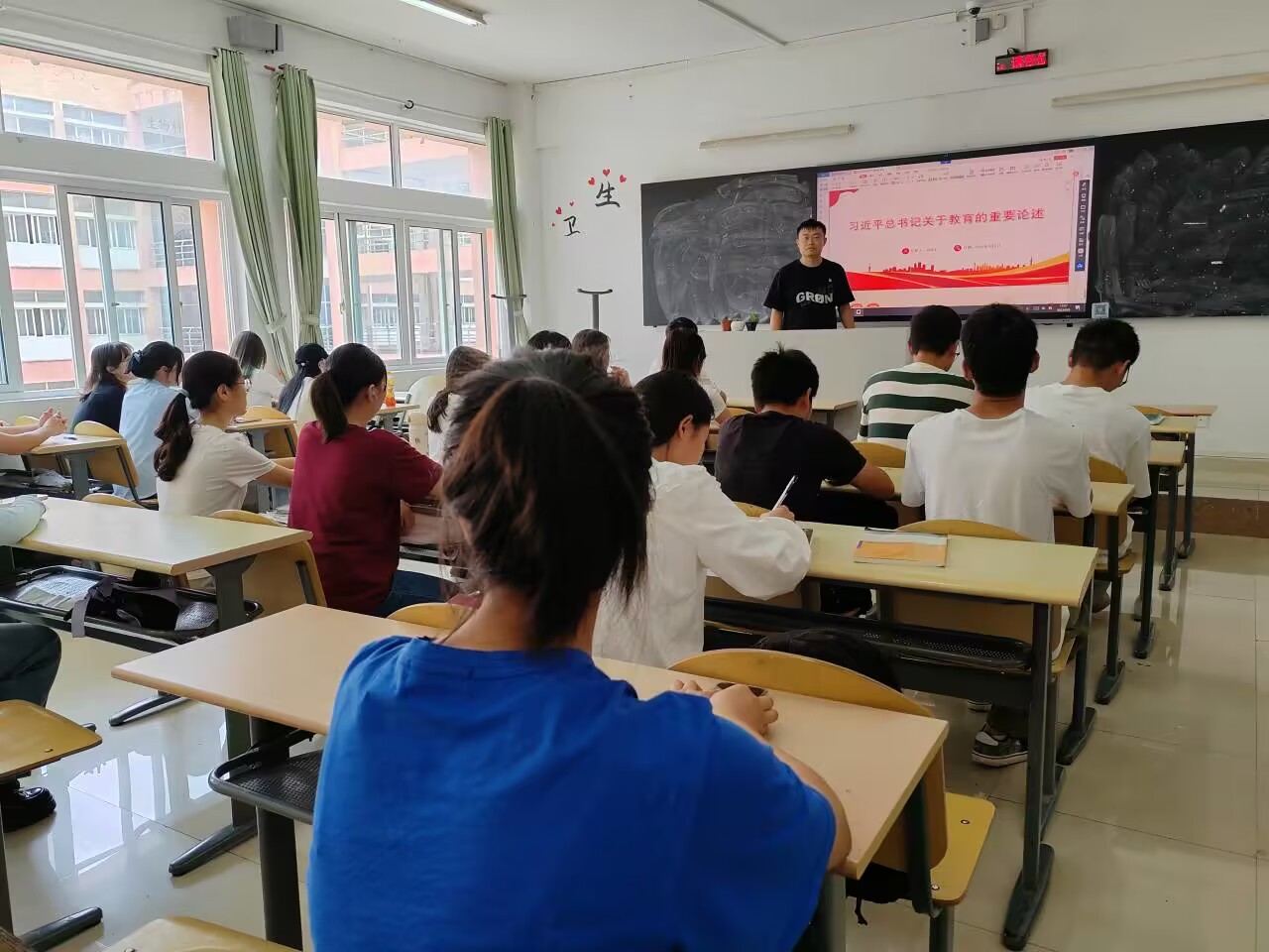 6月6日,黑人av 物理系学生党支部在宁静楼428成功开展《习近平总书记关于教育的重要论述》为主题的党日活动。次党日活动由党支部书记付诗君主持,物理系全体党员参加。 活动伊始,付诗君强调:“教育是国之大计、党之大计,也是一个国家是否强大的最重要依据。教育对于国家富强、民族振兴、社会进步、人民幸福都具有极端重要性。受过教育的人会比没受教育的人有更广阔的视野去看待世界,这种视野是不可或缺的。”随后,付诗君从教育的重要论述的重大意义、思想内涵和精神实质、坚定社会主义办学方向、办好人民满意的教育等四个方面展开解读。 通过此次主题党日活动,让全体党员同志们表示要牢记嘱托、踔厉奋发,充分发挥教育系统人才和智力优势,扎实推进习近平新时代中国特色社会主义思想“探源计划”,加快推进科教兴省战略。