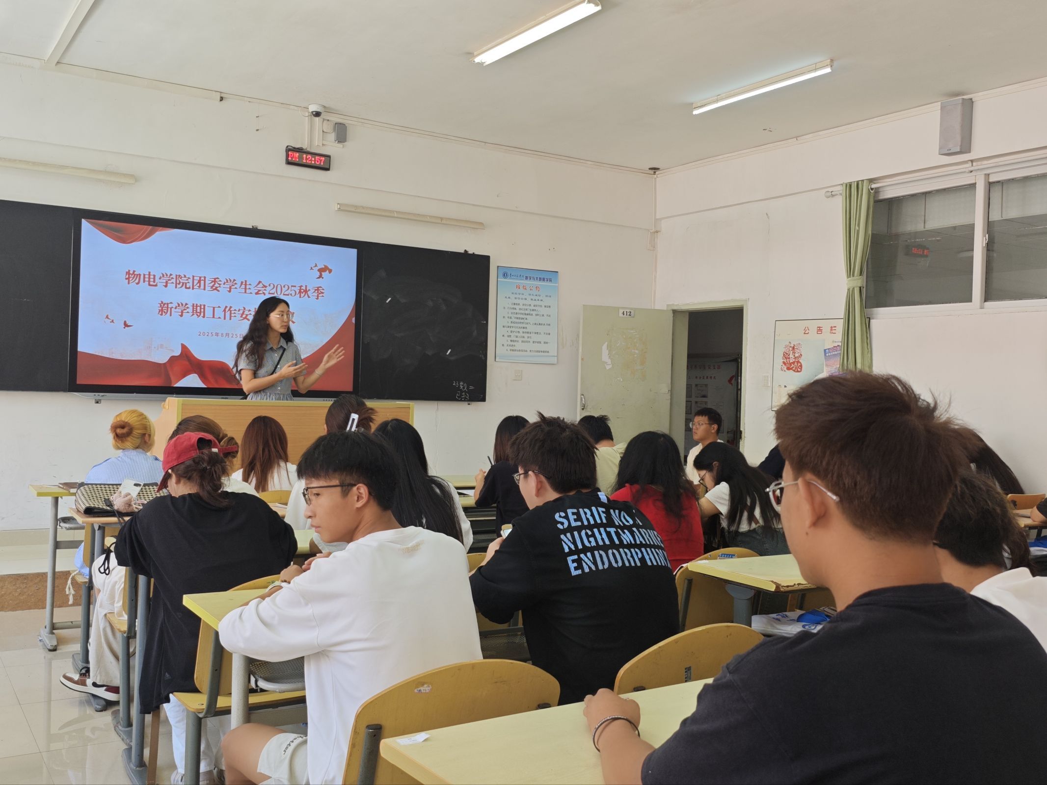 为总结上学期各部门工作情况,部署新学期工作安排,8月25日,物电学院团委学生会在致远楼412教室,召开2025年秋季学期工作部署会。会议由团委负责人苏诗媛主持,学院团委学生会各部门部长参加本次会议。
