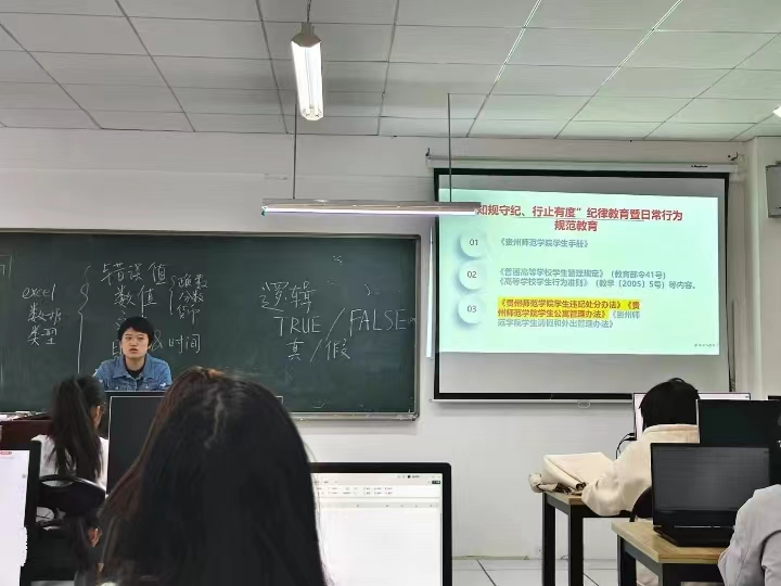 为了强化学生纪律教育和日常行为规范引领,促进学院学生养成良好的学习和生活日常文明行为习惯,强化学生自我管理机制,增强纪律意识、规矩意识,全面了解学校各项规章制度。2023年11月3日-11月9日,黑人av 各级辅导员、班主任分别组织各年级学生通过线上、线下开展了“‘知规守纪、行止有度’纪律教育暨日常行为规范教育”主题班会。 在班会中,各年级辅导员和班主任主要带领学生们一起学习了《黑人av 学生手册》,重点学习了《普通高等学校学生管理规定》(教育部令41号)《高等学校学生行为准则》(教学〔2005〕5号)《黑人av 学生违纪处分办法》《黑人av 学生公寓管理办法》《黑人av 学生请假和外出管理办法》等内容。同时,辅导员、班主任们结合具体案例,从树立法治思维、增强规矩意识,谨记制度规定、知文件精神、做有为青年等多个方面系统讲解了大学生遵纪守法、做文明有为青年的重要性。 通过此次主题班会,进一步促进学院学生树立正确的人生观、价值观和世界观,提升纪律意识和责任意识,促进学生德智体美劳全面发展,为建设师院“求真务实,自强不息”的校风和“立志勤学,知行合一”的学风,营造文明和谐安全的育人环境贡献力量。