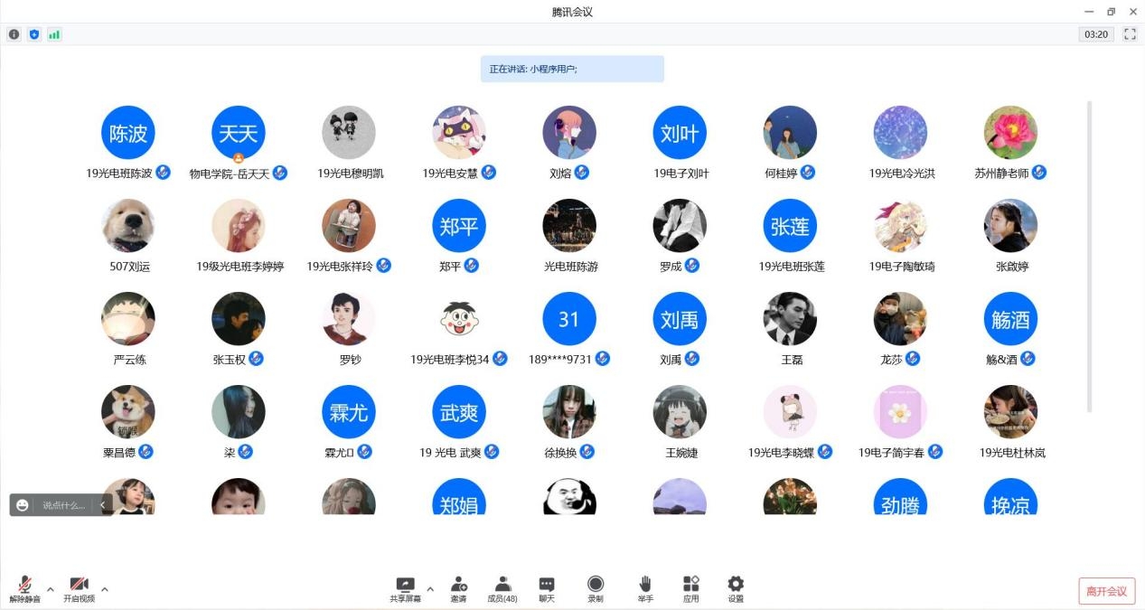 为保障下学期实习工作的顺利开展,使电子信息类专业学生有更好的实习就业机会,并对毕业后的就业有更深的了解,物电学院联合苏州立讯精密工业有限公司于6月26日晚上举行线上会议。会议由物电学院教学科研管理科科长岳天天主持,立讯精密工业有限公司人事主管魏小升主讲,物电学院2019级电子信息类全体同学参加了此次企业实习宣讲会。 首先魏小升详细介绍了苏州立讯精密工业有限公司基本情况,包括公司业务范围、工作内容以及工作薪资、生活食宿等问题,并详细解答了同学们对于实习工作的疑问,让同学们对实习单位有一个全面的了解以便选择适合自己专业的实习工作。 最后岳天天对本次会议做了总结,为学生实习了解了更多可能遇到的问题,并且希望同学们都能找到一个理想的实习岗位,顺利完成实习工作。