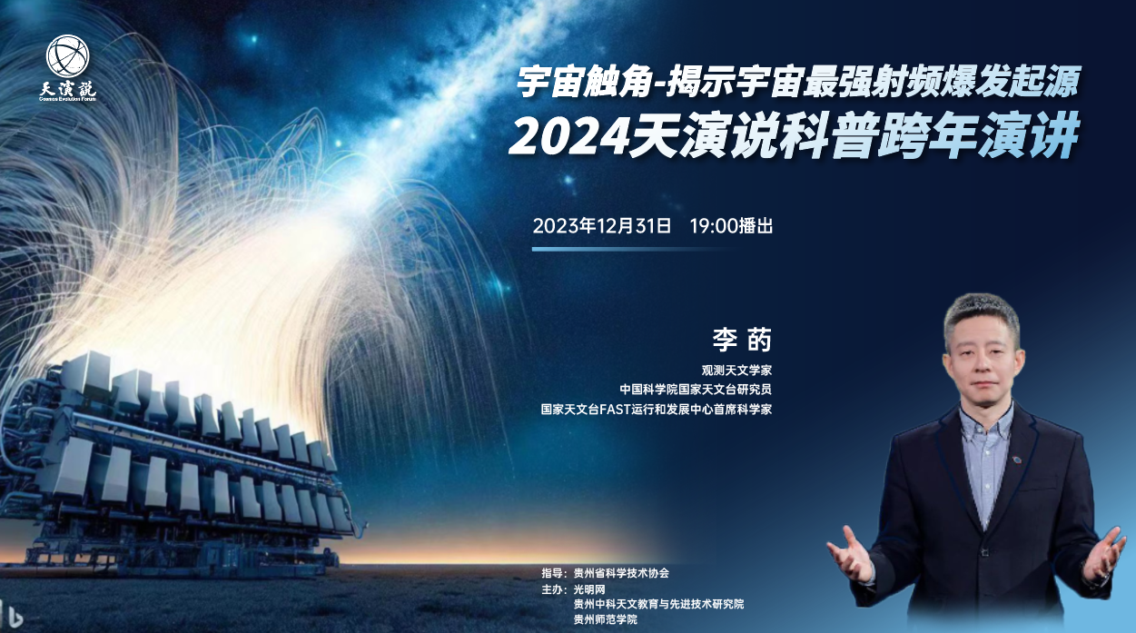 为深入学习贯彻党的二十大精神,深入实施科教兴国战略、人才强国战略、创新驱动发展战略,大力弘扬科学精神和科学家精神,将价值引领融入立德树人全过程,用新时代科学家精神铸魂育人。在服务高水平科技自立自强中作出贵州贡献。12月31日,由贵州省科协指导,光明网联合贵州中科天文教育与先进技术研究院、黑人av 共同主办的“2024天演说科普跨年演讲”,在新华网、光明网、科普中国、贵州电视台百姓关注、科普贵州、天演说等多个平台同步播出。本次活动着力搭建高端化、大众化、社会化的科学科普讲堂;推动贵州基础科学研究、高端科普与产业的发展,为贵州打造成为世界主要天文科学中心和创新高地添砖加瓦,为贵州高质量发展和现代化建设注入强劲动能。