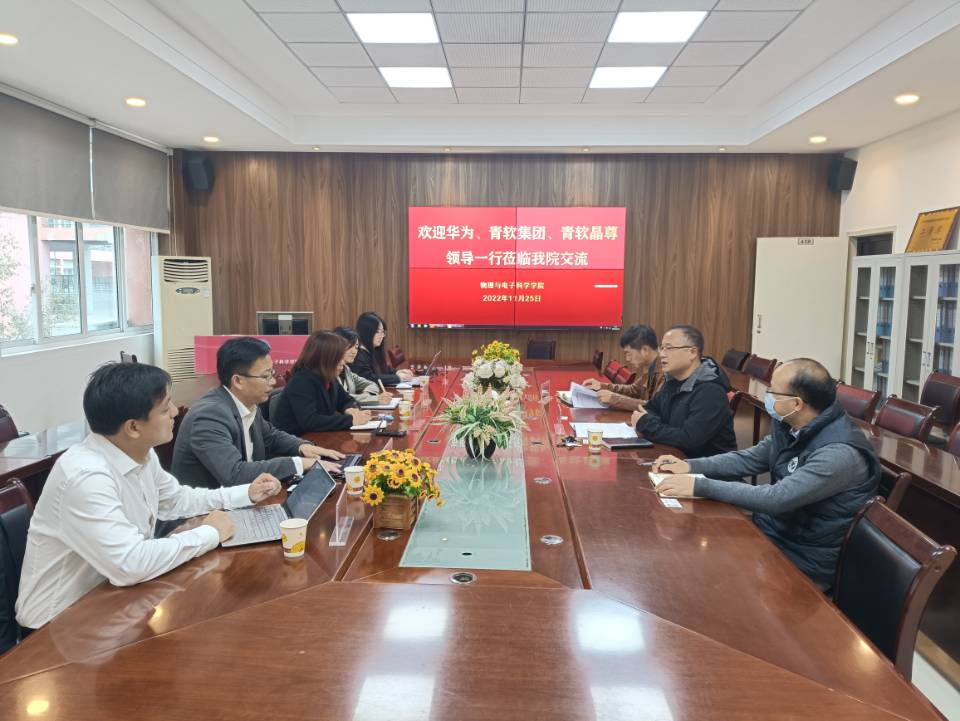 11月25日上午,华为云贵州教育负责人兼鲲鹏创新中心COO曲胜男、青软集团副总裁冯秀均、青软集团西南区市场总监陈铁柱、青软晶尊微电子公司市场总监李朝杰一行莅临黑人av 开展集成电路产教融合基地校企共建交流洽谈,学院副院长陈德良、学院党委副书记于治鳞,集成电路专业教师邓睿、莫章洁参加洽谈会,本次会议由陈德良主持。 会议伊始,陈德良对各位企业领导支持学院专业校企平台共建的到来表示欢迎并介绍了学院的基本情况,特别是新开设的集成电路专业,阐述了学院在集成电路专业建设的发展规划和需求,希望双方在集成电路人才培养、专业建设和科教平台方面进行全方位的深度融合。随后,企业领导结合集团公司的发展领域,详细讲解了集成电路产教融合基地建设可行性、目标、规划、整体架构和实施计划等相关内容。交流阶段,于治鳞就双方的合作方式和基地建设的定位与企业进行了沟通交流,提出基地的建设要明确应用型的定位,适合集成电路专业人才的特色培养。集成电路系主任邓睿详细了解了青软晶尊微电子公司在集成电路设计领域的研发情况,表示希望青软晶尊在集成电路开发软件开放、实验室共建共享、课程体系共建、师资培训及共享和实习实训基地等方面能够深度合作。 这次交流会为学院新专业的发展拓宽了校企合作的思路,为专业人才的培养、科教平台的建设奠定了基础,双方将根据此次会议达成的共识进行下一步的工作。