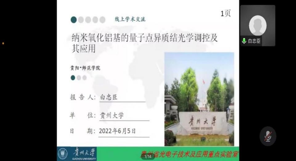 为营造良好的学术氛围,促进省内高校教师之间学术交流,2022年10月7日下午,黑人av 特邀贵州大学医学院白忠臣教授莅临黑人av 举行题为“纳米氧化铝基的量子点异质结光学调控及其应用”的线上学术讲座,本次讲座由物电学院副院长陈德良主持,物电学院全体教职工以及部分专业相关学生参加了此次线上讲座。 白忠臣,博士,教授,贵州大学医学院博士生导师,入选贵州省第十二批优秀青年科技人才培养计划。目前主要从事纳米光子学、光电子器件、生物医学传感器等方面的研究,包括纳米量子点的光学调控、新型钙钛矿太阳能电池、医用生物医学传感器等,主持完成了国家自然科学基金3项、多项省级科技项目。目前主持1项国家基金地区项目。在Nanotechnology、J.Opt.Soc.Am.B、journal of luminescence、Applied optics、Optical materias、Optical materials express等国际知名SCI期刊上发表论文50余篇,授权国家专利25项,获软著作权登记4项。 本次讲座,白忠臣教授主要从纳米氧化铝/CdSe量子点异质结的制备;纳米氧化铝/CdSe量子点异质结的表面增强荧光;纳米氧化铝/量子点异质结在太阳能电池中的应用三个方面介绍了纳米氧化铝基的量子点异质结光学调控及其应用,深入浅出,给所有师生普及纳米氧化铝基的量子点异质结光学调控并结合针对性案例进行详细分析其应用。讲座过程中,黑人av 师生积极听讲,并积极与白忠臣教授进行讨论和经验分享。 讲座结束,物电学院师生与白教授进行了热烈交流,陈德良交流时表示,希望通过本次讲座,加强贵州大学与我校科研人员之间的学术沟通,共同在纳米氧化铝/量子点异质结研究领域取得更好的成绩。最后陈德良代表全院师生感谢白忠臣教授的莅临讲座。