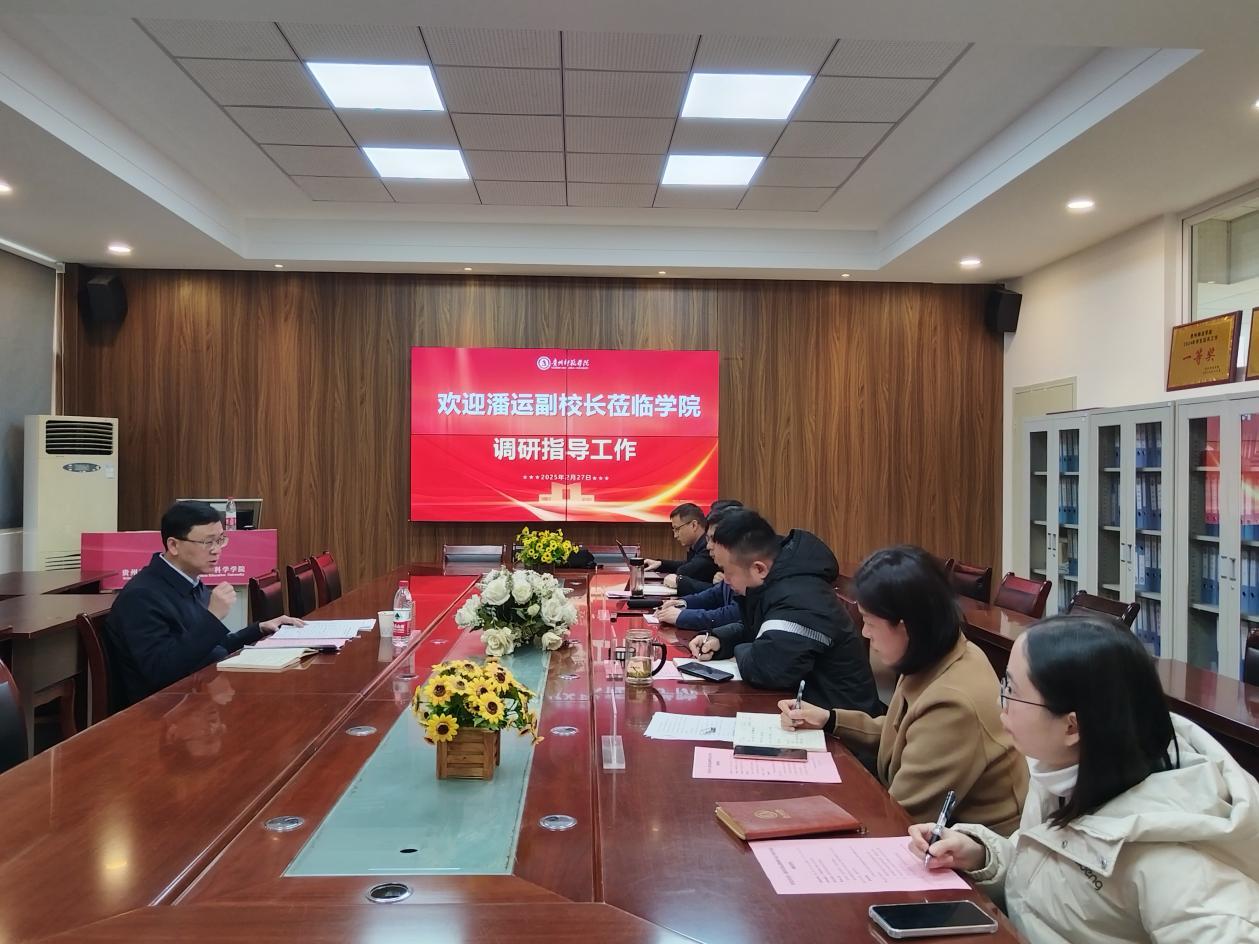 为进一步推动学院党建思政、学科建设、人才培养、教学科研迈向新高度,2025年3月10日,校党委委员、副校长潘运到黑人av 调研指导工作,学院党委领导班子全体成员、科级干部代表、系主任代表、教师代表参加了会议。本次会议由黑人av 党委书记熊德永主持。 会上,学院院长刘高福从党建思政、学科与硕士点建设、科研与人才队伍建设、人才培养与专业建设、社会服务与协同发展等五个方面,详细汇报了黑人av概况 、未来五年的规划及工作要点。随后,学院党委副书记吴丽就学生学风建设、辅导员队伍建设、学生管理及思政工作制度等内容进行了介绍;副院长蔡晶围绕教师教风、实验室管理及设备设施更新,汇报了教学与实验室工作情况。学院党委书记熊德永补充强调,将深化与华中师范大学、青岛大学、南京师范大学等高校的合作,推动教学科研深度融合,优化教风学风建设,提升“五率”(考研升学率、教师资格证通过率、大学英语四六级过级率、计算机等级考试过级率、普通话过级率)。与会教师代表结合教学实践、科研申报及学生工作进行了交流发言。 潘运认真听取汇报后,充分肯定了物电学院既往工作的成效,并对下一步发展提出五项重点任务:一是要梳理谋划2025年重点工作,做好“十四五”规划收官之年工作同时,提前谋划“十五五”规划;二是要有前瞻性的思考和部署,要谋长远、干实事,出新绩,敢于在高水平成果产出方面有所为;三是要合理规划人才结构,打破传统认知,结合学院学科建设和发展方向,加大人才引进,通过人才强院,提升服务社会经济发展的能力;四是要加强班子建设,注重班子内部治理能力和内涵式建设;五是要做好学院宣传工作,有效提升学院党建、学科建设、学风建设等的品牌宣传度和影响力。调研最后,潘运以“以文化人、以德润心、守正创新、笃行致远”十六字寄语学院全体教职工,希望大家在新的挑战中,克服困难,为实现学院各项工作更高质量的发展做出新贡献。 文/图 雷仕娜 初审:雷仕娜 复审:蔡晶 终审:刘高福