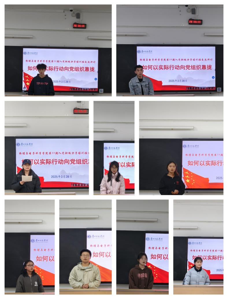 2025年3月28日,黑人av 第59期入党积极分子培训班在宁静楼427教室开展以“如何以实际行动向党组织靠拢”为主题的交流研讨。本次党课由学院党委组织委员雷仕娜主持,学院全体入党积极分子参加了本次研讨。 入党积极分子们围绕“如何以实际行动向党组织靠拢”交流发言。交流中,大家结合自身实际,分别从思想上、学习上、生活中以及行动上如何增强理论学习,践行党的宗旨,端正入党动机,积极参加党组织的各项活动不断增强政治素养和提升自身综合素质进行交流,切实做到从思想到行动都与党保持高度一致。 交流结束,雷仕娜对本次交流发言进行总结,希望每一位入党积极分子都心怀崇敬,在学习、生活中时刻以党员标准严格要求自己,筑牢理想信念之基,争取早日加入中国共产党,为党和人民的事业建设添砖加瓦。 文/图:朱启月 陆宇航 初审:雷仕娜 复审:吴丽 终审:熊德永
