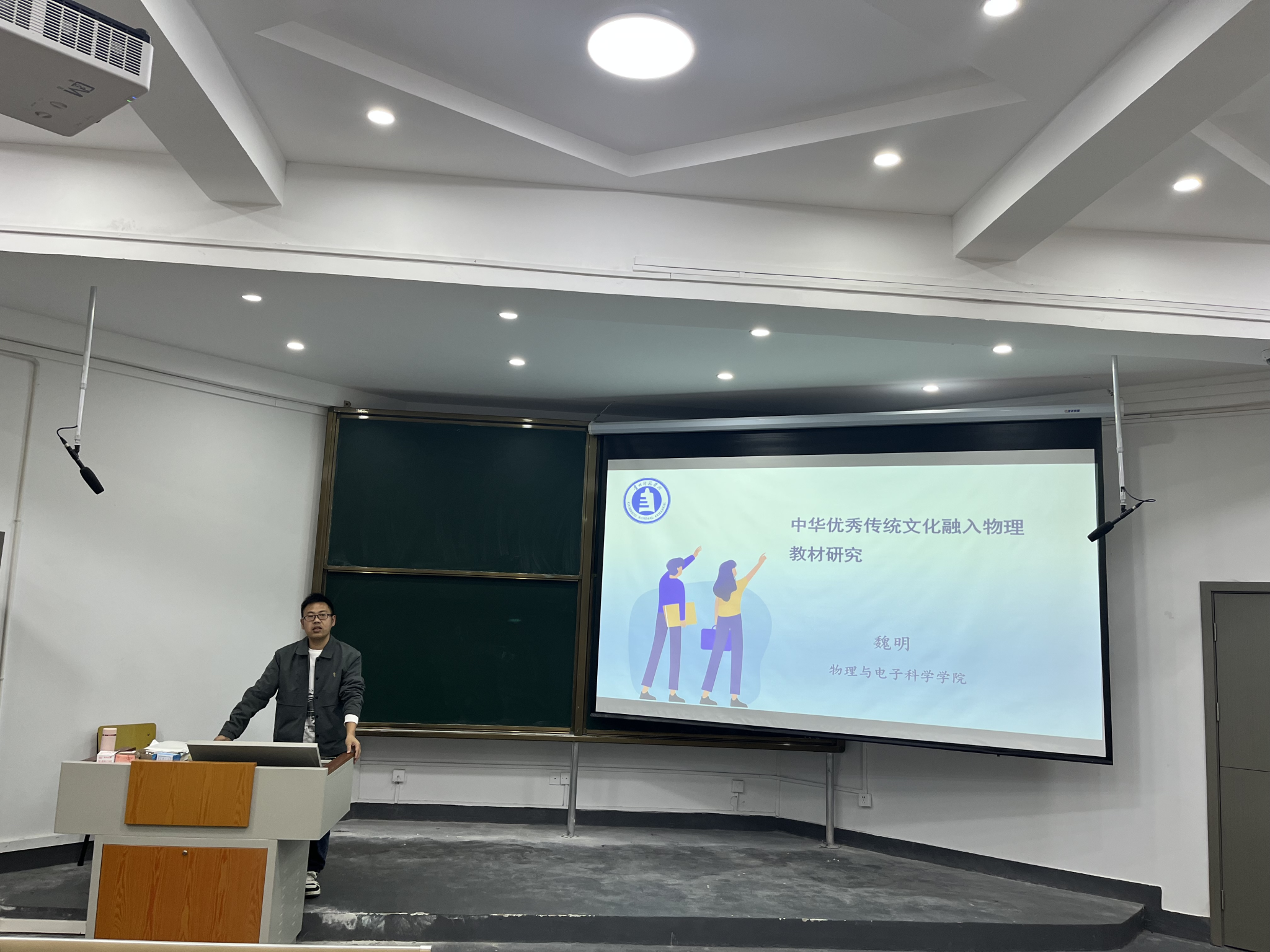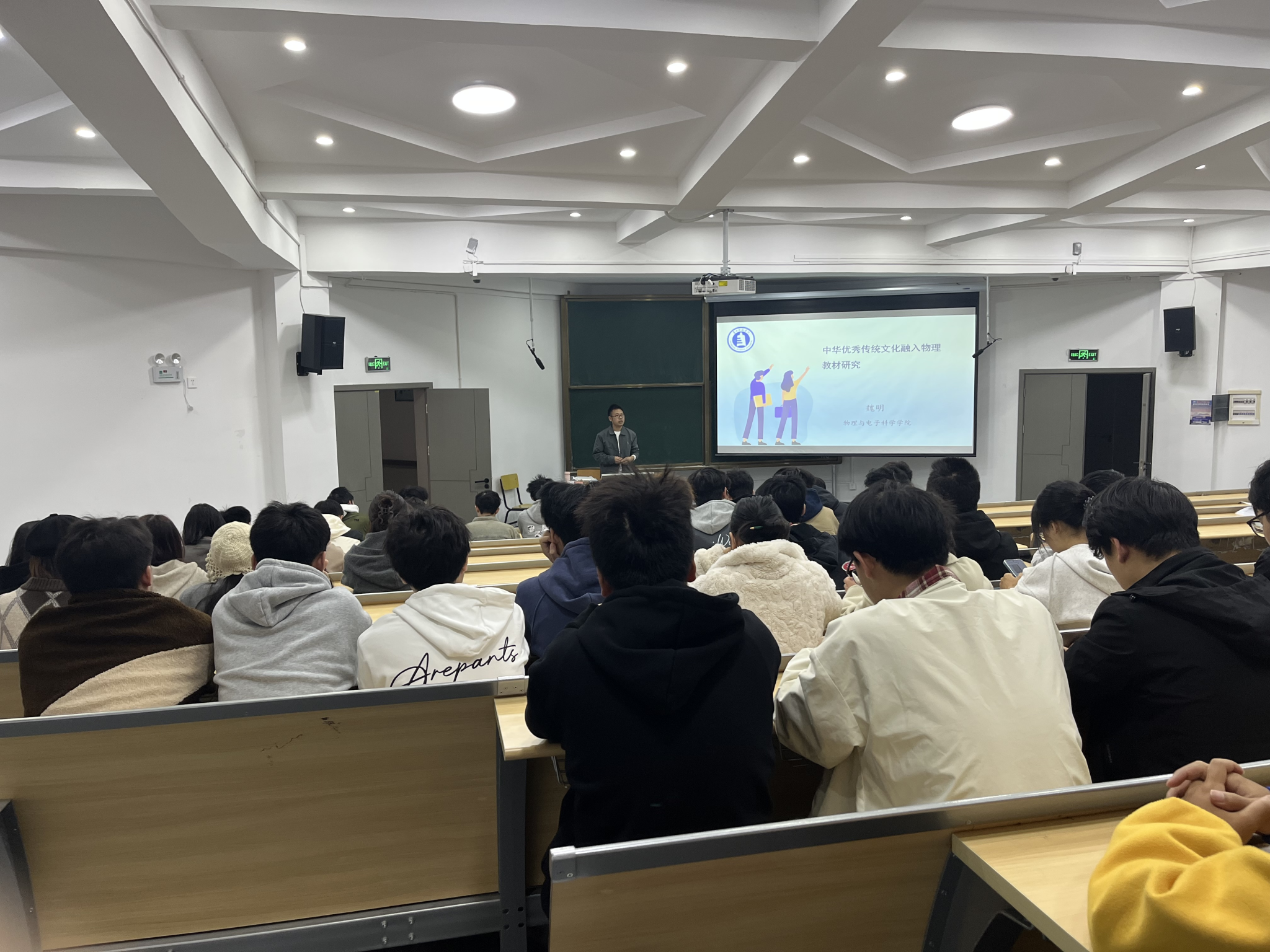 为帮助师范生夯实教学理论基础,探索传统文化与学科教学融合的创新路径,2025年11月7日,魏明老师面向2024级物理学专业师范生的“中国优秀传统文化融入物理教材”专题讲座在宁静楼435顺利举办。本次讲座聚焦师范生核心素养提升,助力其成长为兼具科学素养与文化底蕴的复合型教师。 讲座中,魏明围绕师范生的职业发展需求,从“文化素材挖掘”“教学融合方法”“教材实践应用”三大模块展开分享。结合大二师范生的学习特点,通过具体案例拆解,生动阐释了传统文化中蕴藏的物理智慧。如从《墨经》中的光学记载到天坛圜丘的声学奇迹,从古代杠杆工具的力学应用到指南针的磁学原理,让师范生直观感受传统文化与物理知识的内在关联。 针对师范生未来教材编写与课堂教学的实际需求,魏明提出实用建议:一是建立“文化-物理”知识关联库,系统梳理可融入教材的传统文化素材;二是设计“情境化+探究式”教学活动,让传统文化在物理实验、问题研讨中自然渗透;三是注重教学语言转化,用师范生易于理解的方式搭建文化与学科的桥梁,为未来教学积累实践经验。 此次讲座,不仅为同学们提供了学科融合教学的新思路,更强化了其传承中华优秀传统文化的教育责任。未来,学校将持续开展此类专题讲座,助力师范生提升综合教学素养,为培养兼具科学精神与文化自信的新时代青少年储备坚实力量。 文图/刘家兴 陈登文 一审/岳天天 二审/蔡晶 三审/刘高福