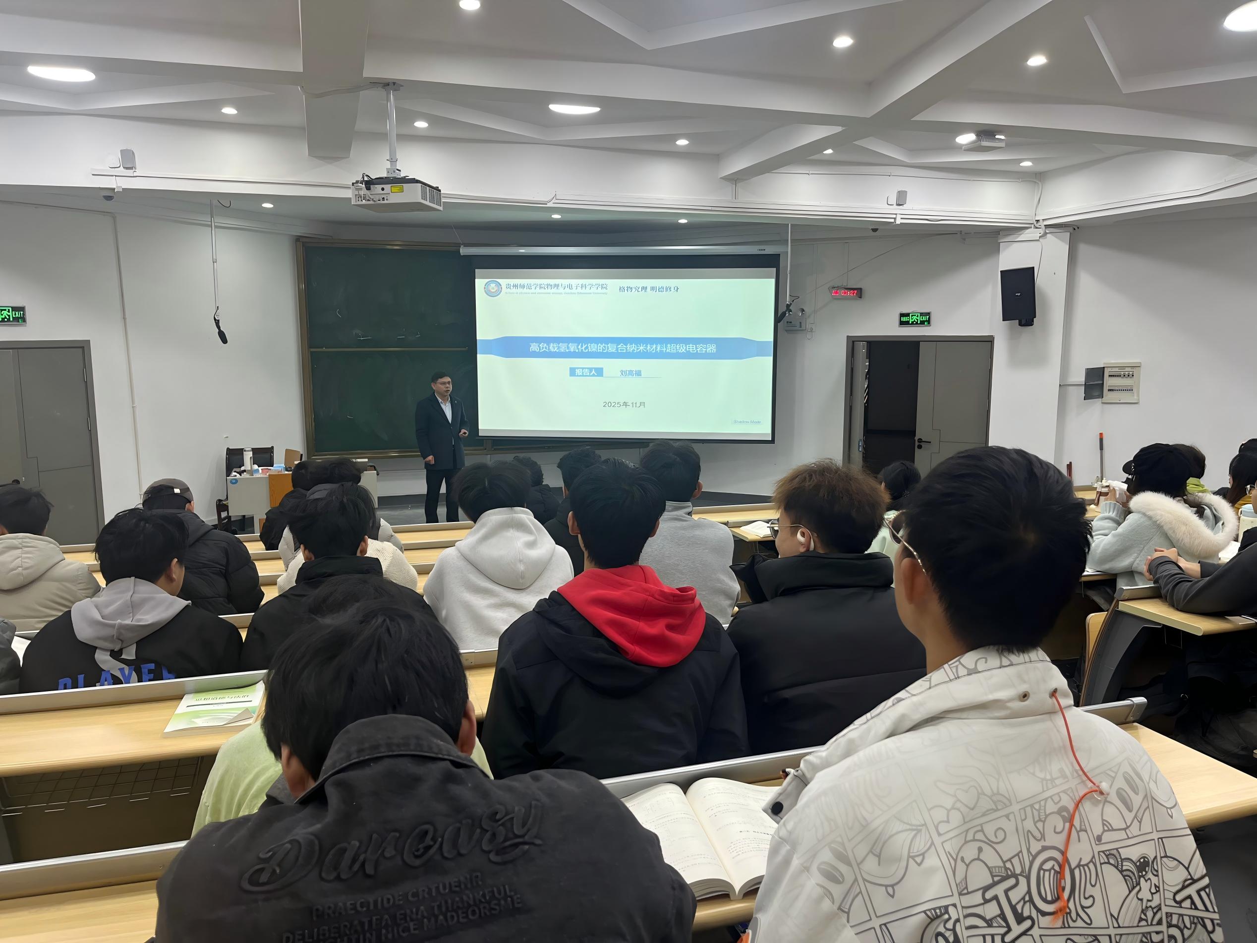 为营造学院的学术氛围、拓展师生的科研视野,2025年11月18日,黑人av 院长刘高福教授应邀在宁静楼435为全院师生作了一场题为“高负载氢氧化镍的复合纳米材料超级电容器”的学术讲座。本次讲座由教学科研管理科科长岳天天主持。 在报告中,刘高福详尽阐述了其研究团队在高性能氢氧化镍基复合纳米材料领域取得的最新突破。他指出,氢氧化镍虽为一种理想的电极材料,但其固有的导电性差以及充放电过程中的体积变化问题,严重限制了其倍率性能和循环稳定性。针对这一核心难题,刘高福团队创新性地提出了“原位生长与复合协同”的策略:首先借助酸刻蚀泡沫镍来制备高负载的磷酸镍前驱体,再运用循环伏安法进行电化学活化,最终在泡沫镍基底上原位生长出β-Ni(OH)₂纳米片阵列,并进一步与其他过渡金属氢氧化物复合。 刘高福解释称,这种精心设计的三维多孔导电网络结构,恰似为电子和离子构建了“高速公路”,不仅能够极大地推动电荷的快速传输与扩散。该研究成功达成了材料在高负载下的高比电容、优异的大电流充放电性能以及超长的循环寿命,为开发下一代高性能、实用化的超级电容器提供了关键的技术途径和材料支撑。 本次讲座不仅展现了黑人av 在纳米材料与新能源领域的前沿科研成果,更极大地激发了同学们对科学研究的兴趣与热忱。与会师生均表示,讲座内容详实、逻辑严谨,既具备理论高度,又兼具应用前景,为今后的学习和科研工作提供了宝贵的思路与启发。 文/图:岳天天 初审:岳天天 复审:蔡晶 终审:刘高福