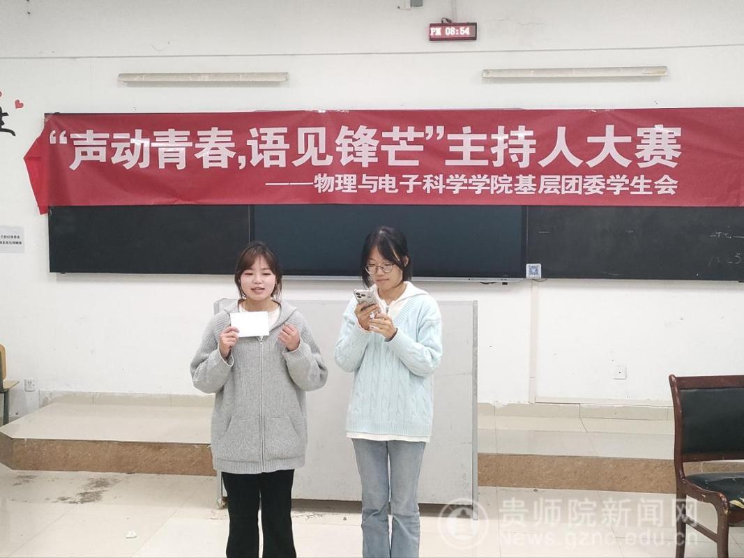 为培养大学生口头表达能力、丰富校园生活、展现物电学子风采,10月23日,物电学院于宁静楼429举办“声动青春,语见锋芒”主持人大赛,院主持队朱启月、朱培渝、田恒凯、陈浩蓝担任评委。 自我展示环节,选手们在1分钟内精炼介绍个人情况,并用真挚情感传递对主持的热爱;随后的即兴评述环节,选手随机抽取社会热点或校园话题,在3分钟内清晰报题并展开阐述,通过剖析现象、梳理逻辑、引用案例展现思辨能力与语言魅力;搭档主持环节中,选手两两成组,经快速沟通分工后,用2分钟完成模拟场景主持,凭借默契配合与灵活应变,将团队协作力与主持功底深度融合。评委团则从仪表风度、语言表达、应变能力等维度进行专业点评打分,既肯定选手舞台表现力,也提出改良建议,助力其提升专业素养。 本次大赛为校园文化注入鲜活力量,也为学子成长搭建实践平台。未来,物电学院将持续以多元学生活动为载体,全方位提升学生综合素质,引领青年在实践中坚定文化自信,书写青春精彩篇章。