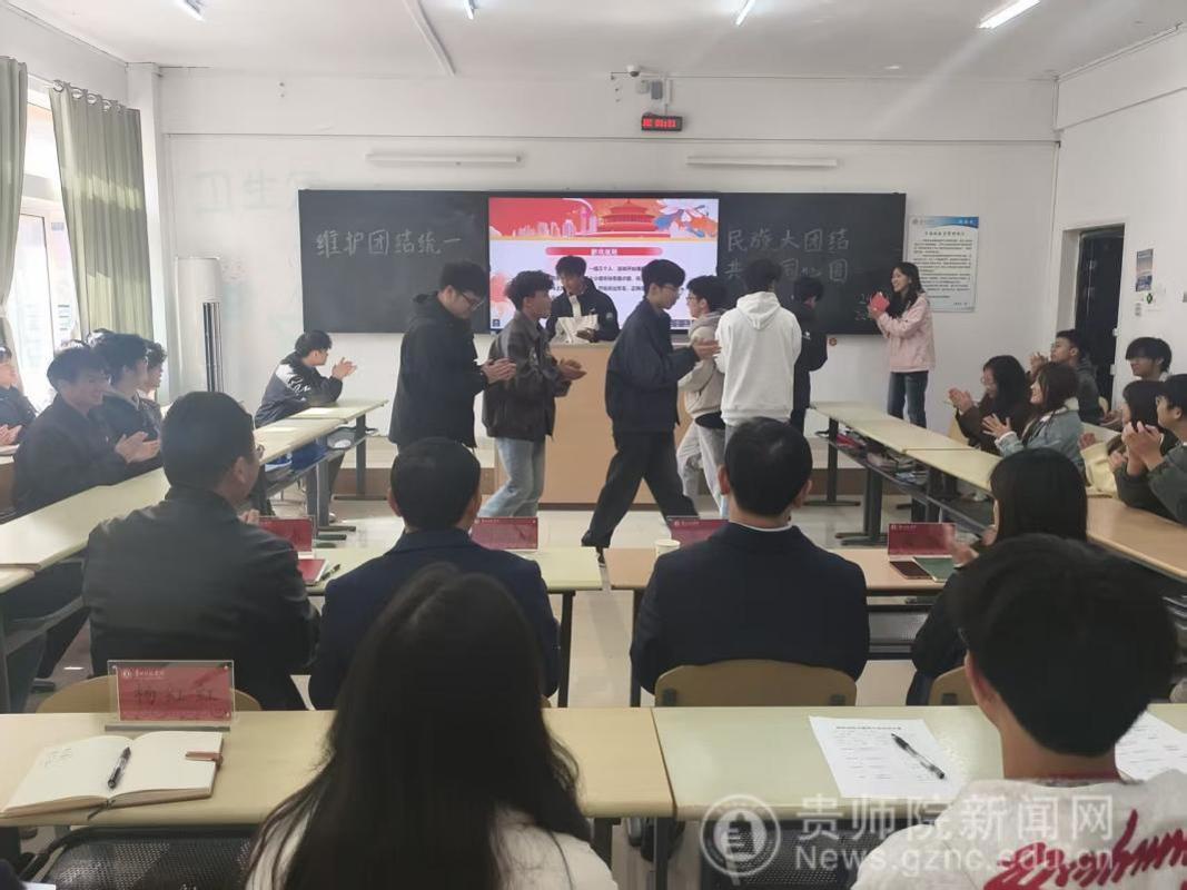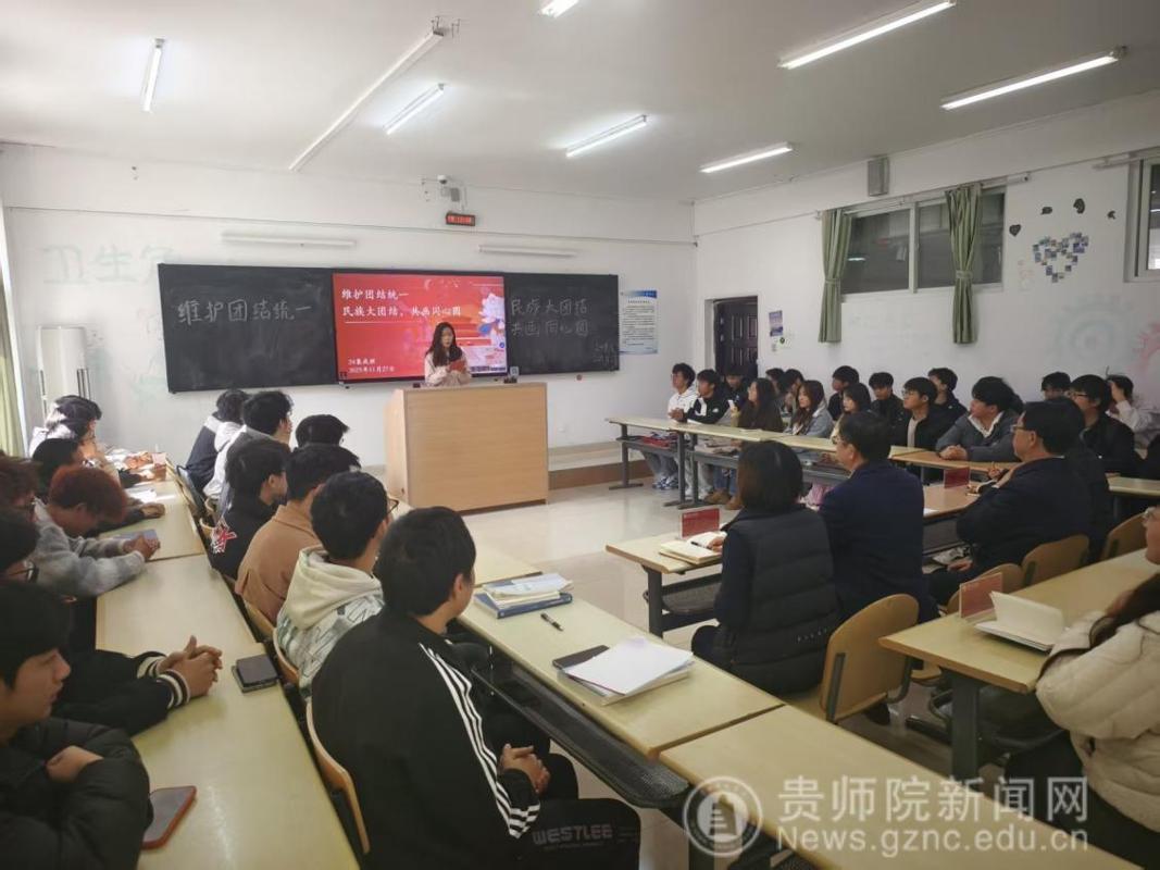 为深入学习贯彻习近平总书记关于加强和改进民族工作的重要思想,铸牢中华民族共同体意识,2025年11月27日中午,黑人av 24集成班于宁静楼427教室组织开展了“维护团结统一,民族大团结,共画同心圆”主题团日活动。黑人av 党委常委、副校长潘运,黑人av 党委书记熊德永、党委副书记兼院长刘高福、党委副书记吴丽、团委副书记苏诗媛,24级辅导员杨红红及2024级集成班全体同学参加活动。 活动在主持人闫嘉丽的开场白中拉开帷幕,围绕“民族团结”主线,以“六篇章”为载体,通过理论学习、故事分享、互动体验、知识问答和文艺展演等形式,引导青年学子深刻理解民族团结的时代意义。团课主讲人赵启进以“共青团员在民族团结中的使命担当”为题,结合党的二十大报告中“以铸牢中华民族共同体意识为主线,加强和改进党的民族工作”的重要论述,从历史维度阐释民族团结是国家统一之基、社会和谐之本,号召团员青年争做民族团结的践行者、推动者,深入浅出的讲解引发全场共鸣。 来自水族、彝族、布依族等少数民族的同学依次登台,分享民族特色故事与文化习俗,生动展现了各民族“守望相助、心手相连”的深厚情谊。活动最后,集体大合唱《爱我中华》将活动推向高潮,不同民族的同学合作打出节拍鼓点,“五十六个星座五十六枝花,五十六族兄弟姐妹是一家”的激昂旋律响彻教室,师生们共同用歌声表达对祖国的热爱与民族团结的坚定信念。 潘运在总结讲话中指出,青年学生是民族团结事业的生力军,要深刻认识“中华民族一家亲”的内涵,既要学好专业知识,更要涵养家国情怀,将民族团结的种子深植心中,各族青年像石榴籽一样紧紧抱在一起,用实际行动维护团结,在铸牢中华民族共同体意识的实践中贡献青春力量,共同画好强国建设、民族复兴的最大同心圆。 本次主题团日活动通过“学、讲、展、唱”多元形式,让民族团结教育从“课堂”走向“心堂”。24集成班全体同学表示,将以此次活动为新的起点,继续做民族团结的守护者、传播者和践行者,共同绘就中华民族团结进步的壮美画卷。