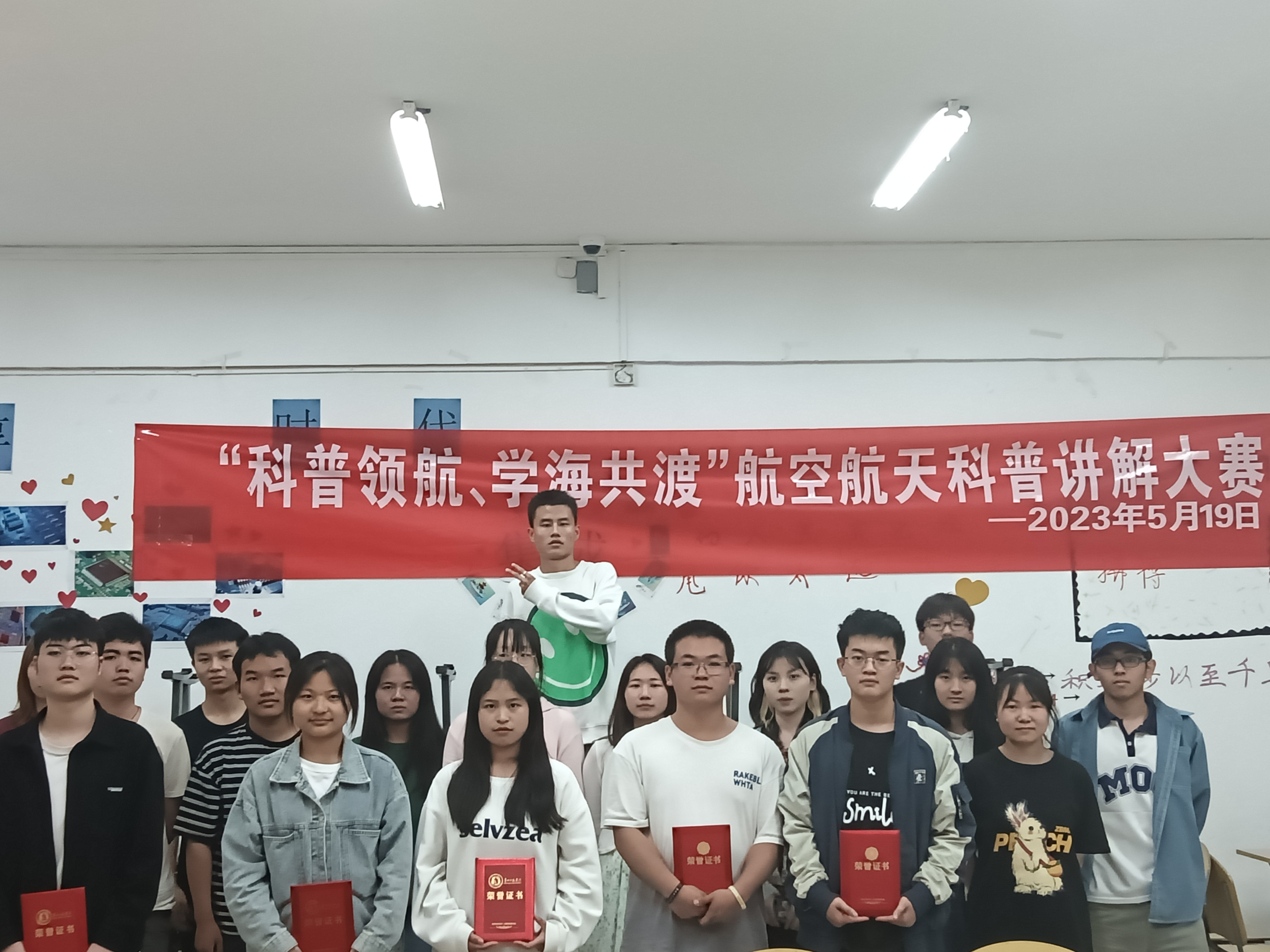 进一步宣扬崇尚科学、探索未知、勇于创新的新时代航天精神.5月19日,黑人av 在宁静楼429举办第二届“星光杯”科普讲解大赛预赛。本次比赛由22级旅游与文化学院的蔡洋主持。 首先,赛前每位选手都需要抽签决定出场顺序;接着,选手们分享自己对航空航天知识的了解;然后,随机抽取关于航天航空的知识命题进行回答;最后,由评委对选手进行提问。本次比赛选出两名优秀选手参加决赛,分别是22级集成电路与集成系统班苟源泉、物理一班何家杰。 本次比赛的进行,让同学们能了解到更多关于航天航空的知识,激发师院学子对航天航空知识领域的探索,让同学们知道并学习到新时代航天精神。