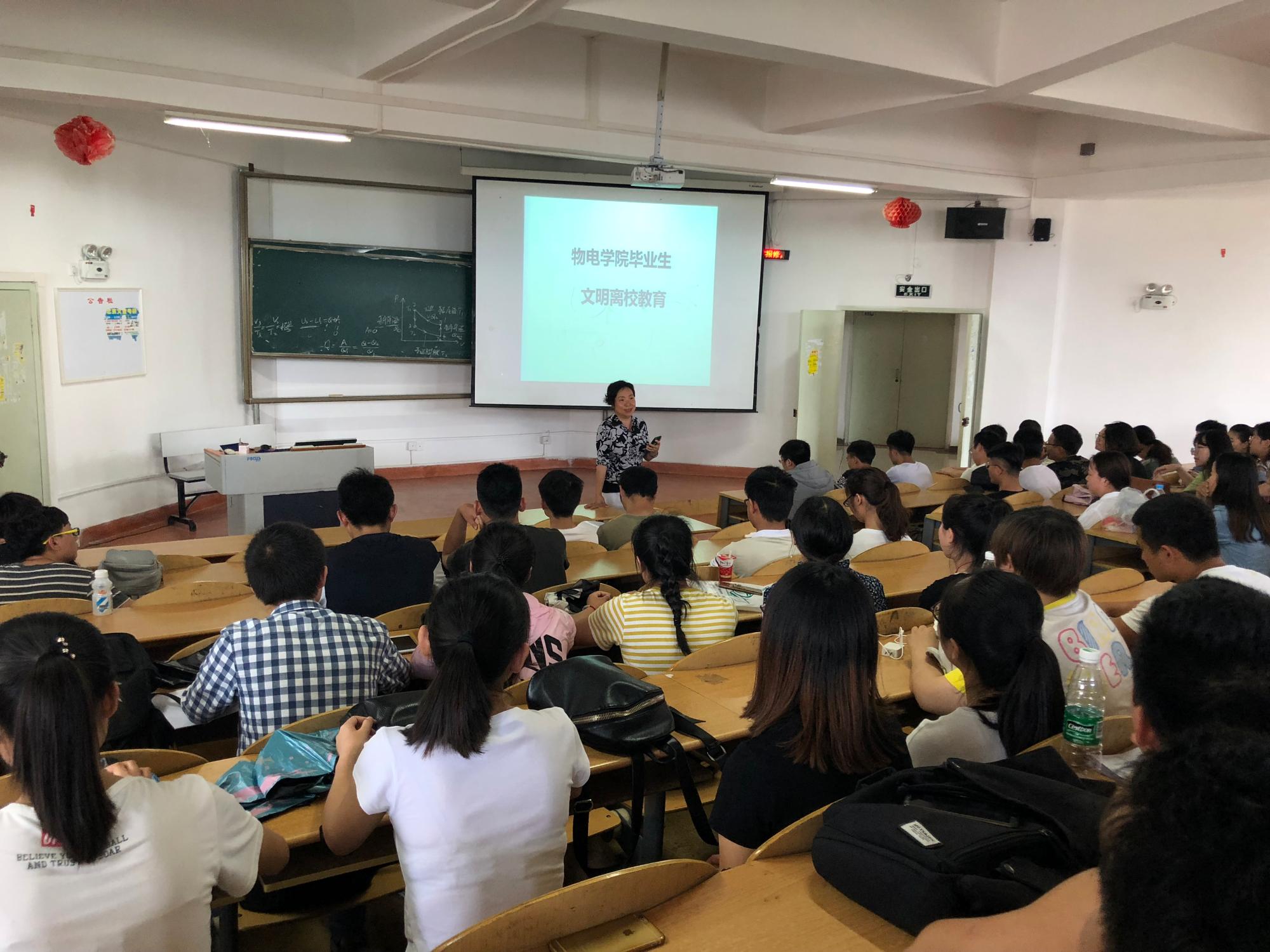 为了保证毕业生文明顺利离校、增强毕业生安全防范意识,2018年5月17日下午,物电学院在宁静楼436教室开展了2018届毕业生文明离校教育主题班会,会议由辅导员王珏老师主持,基层党委书记王平瑞教授参加了此次班会。