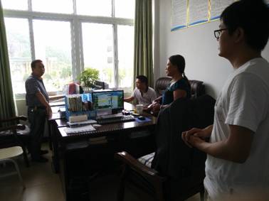 与石阡中学教务处主任黎老师交流 6月22日:上午从石阡出发,10点左右到达铜仁市,立即奔赴铜仁市教育局办公室与主管部门沟通,10点半左右前往铜仁市第八中学开展宣传工作,下午赶赴铜仁二中、铜仁一中、铜仁市民族中学分别开展宣传工作,宣传资料均由沟通部门转交高三年级班主任。