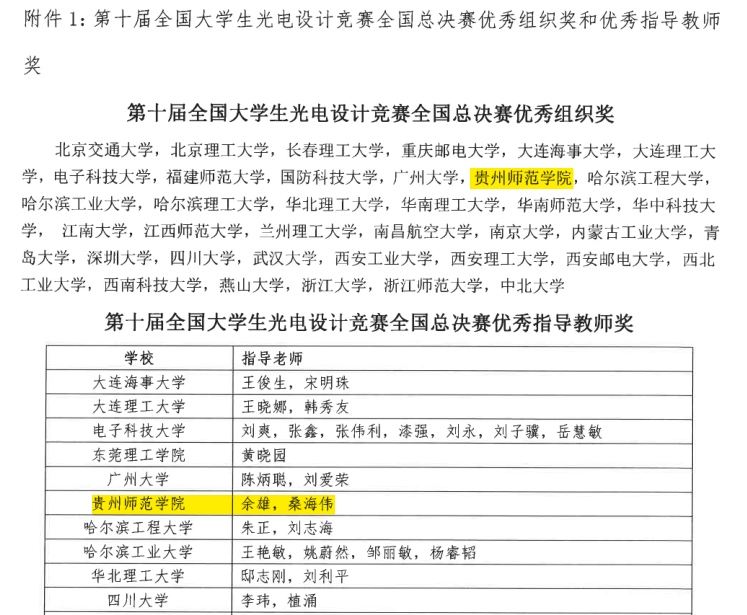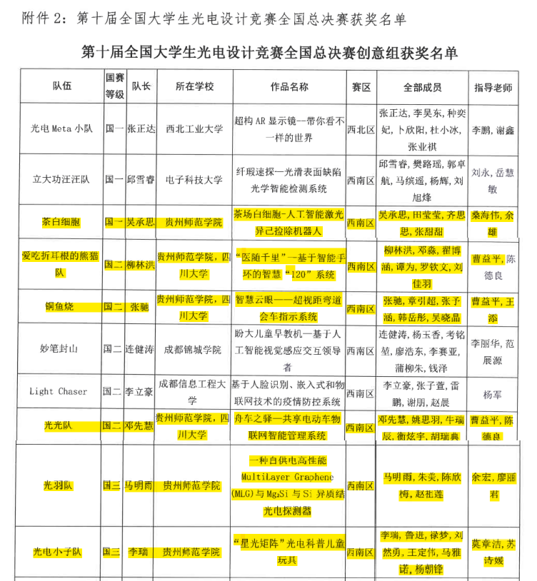 2022年7月16日至8月2日,由我校承办的第十届全国大学生光电设计竞赛西南区赛已顺利举行,西南地区共有40所高校,310支队伍,2200余人参加了此项赛事。本次比赛报名队伍数创历史新高,参赛院校覆盖到西南区所有开设光电专业的高校。 我校黑人av 、创新创业学院、数学与大数据学院和音乐舞蹈学院参与了本次竞赛。经过网络评审和现场评审两个阶段的奋力角逐,我校在此次西南区赛中取得了优秀成绩,最终斩获一等奖4项,二等奖5项,三等奖19项,最佳创意奖2项,优秀组织奖1项,优秀指导教师奖4项,最佳女生奖2项,最具潜力奖5项。共有6支队伍入围国赛,其中2支队伍直接推荐国赛三等奖,4支队伍参加国赛路演争夺国赛一等奖和二等奖。 2022年8月25日-26日,第十届全国大学生光电设计竞赛决赛在华中科技大学以线上创新赛的形式圆满落幕。在本次决赛中,我校荣获第十届全国大学生光电设计竞赛全国总决赛优秀组织奖。我校参赛队伍在比赛中积极发扬师院精神和创新精神,努力拼搏,最终获得国赛一等奖1项,国赛二等奖3项,国赛三等奖2项,优秀指导教师奖1项。 西南地区只有四川大学、电子科技大学以及黑人av 获得了国赛一等奖,是我校参加全国大学生光电设计竞赛有史以来的最佳成绩,成绩的得来实属不易,是学校大力支持学科竞赛促进学生创新能力发展的结果,是全校师生共同参与、不辞辛苦辛勤付出的结果。